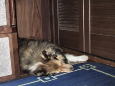 いつの間にやらもう1ヶ月過ぎて完全になじんでる感じの内ワンコ・エル 当初と比べてだいぶ落ち着きが出てきました。 夜のお休みタイムもあっさりペロペロです。消灯すると飼い主のふとんにスリスリ。 クッション代わりに体を預けてきます。「あの〜、ちょっと重いんだってばぁ」 でも10Kgないからまだマシなほうか 体をナデナデしてあげてしばしのスキンシップ、たぶん2〜3分かな。 さあ寝るよ!それを合図に飼い主の顔をペロリひとなめしてお気入りの場所へ そうそう、お利口さんなんだよね そこまでは だからさ、目覚ましより早く起こさないでくれるかな(-_-;)
