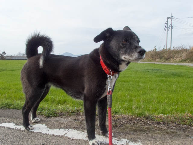ほんのひと時だけ雲の合間からお日様が顔をだした堤防沿いの道を行く。