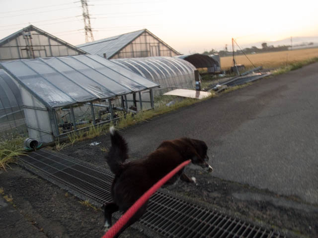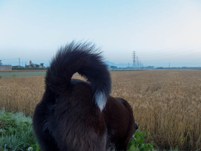 しっぽの向こうに日の出が見える。
