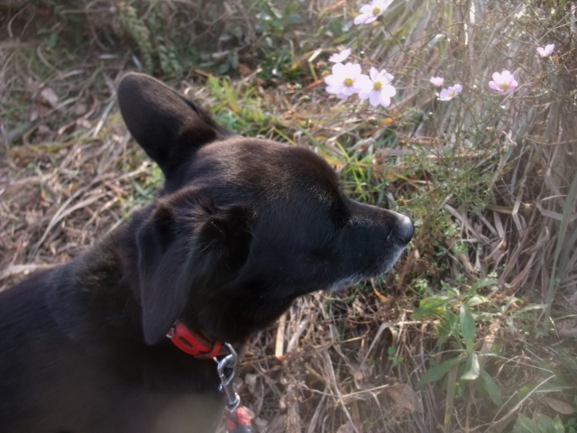 まだコスモスがかろうじて咲いている。さあ、イヴ姫 ポーズをお願いします。
