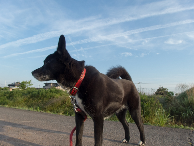 イヴ姫はクンクン。麦の収穫も半分くらいは終わっている感じかな。麦秋の季語は夏。露が始まるまでの短い期間だろうけど。