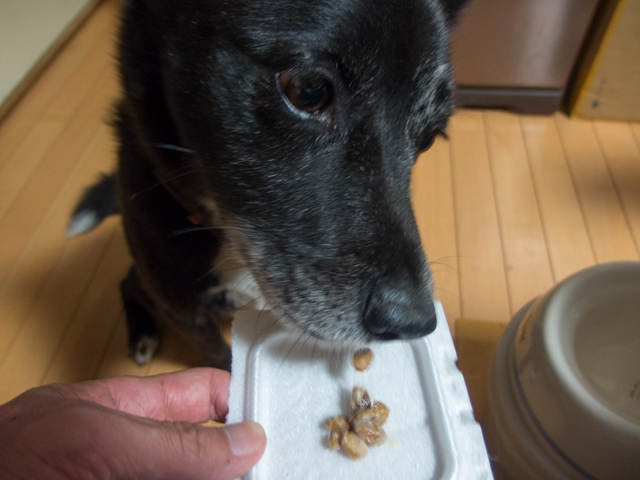 いつもより余計に納豆を食べられて満足の姫。納豆を食って納得♪