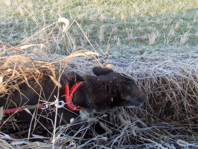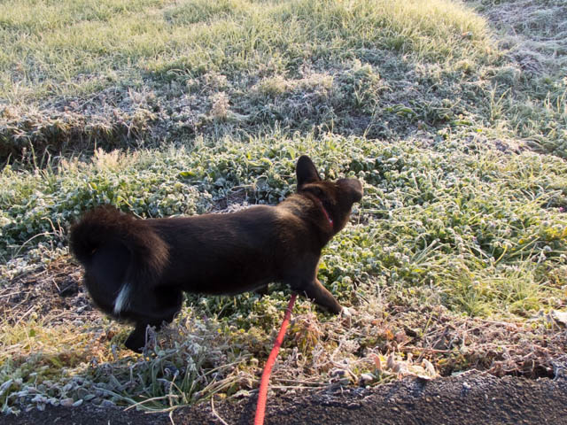 朝は寒いよ。霜が降りてるよ。でもまったくそんなことは気にならないイヴ姫。今年も元気ですごすでしゅね。