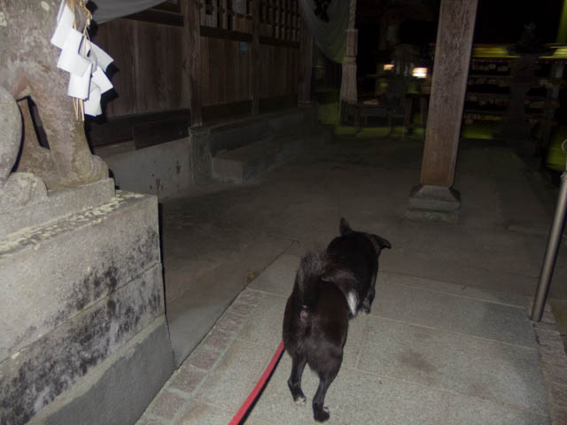 気を取り直して、狛犬さんと並ぶ姫。