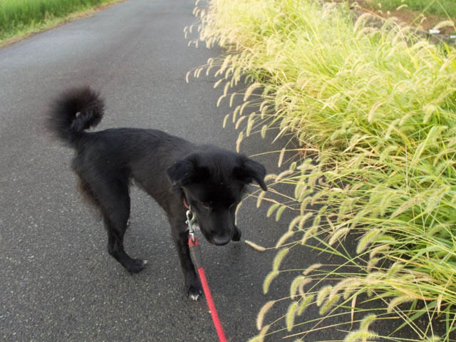 猫じゃらしの咲く道をじゃれもせず行くマリン。