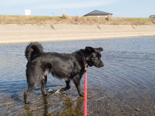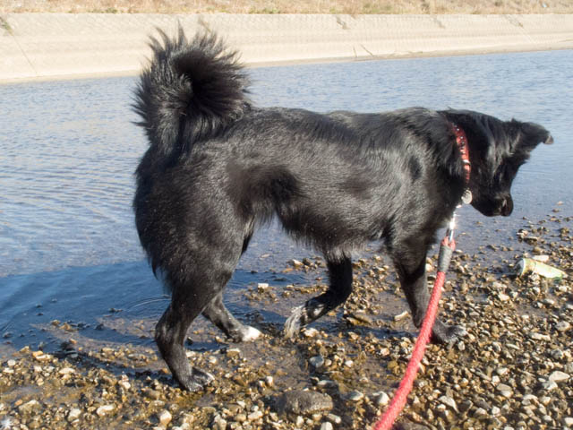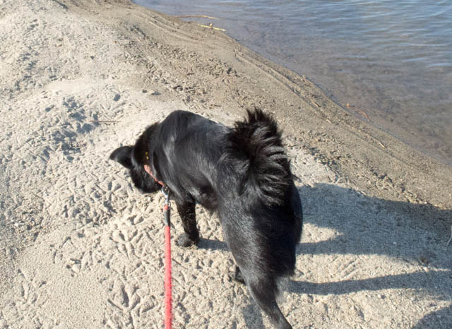 と来てみれば、あらあら、水が少ない。浜辺ができてるよ。