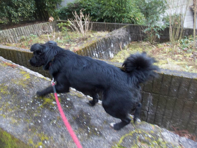 元気いっぱいのマリン、今朝は階段トレーニングをするつもりらしい。