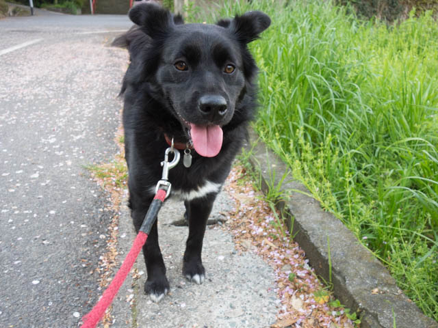 ピンクのじゅうたん、桜の葉っぱフミフミのマリン。