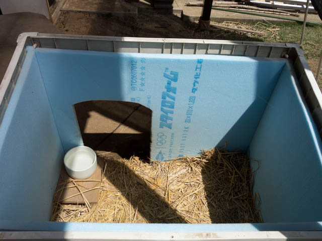 おまけにコルクマットを敷いて、その上にはわら。