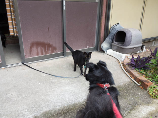 あれ、家の中にもう一匹黒猫が控えてるよ。