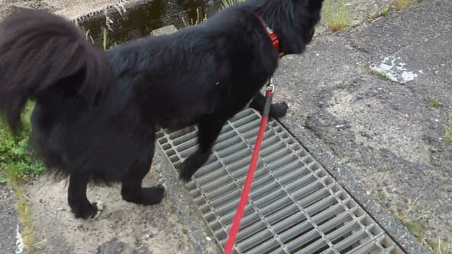 右の前足を軸に残して踏ん張り、左の前足を大きく前へ。