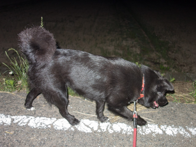 そんな訳でおめざのりんごの無かった飼い主とマリン夜明け前の道を行く。