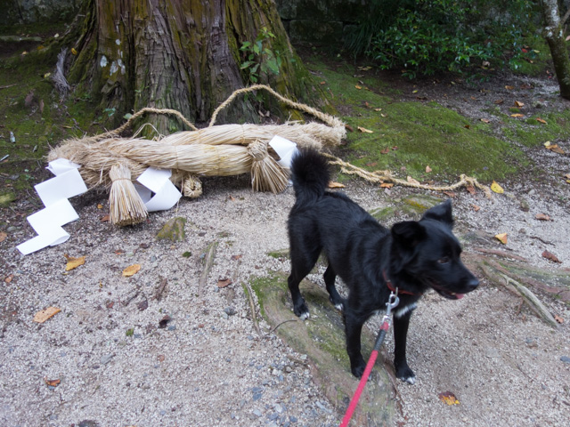 おっとおっと、本殿もしめ縄を取り替えているぞなもし。