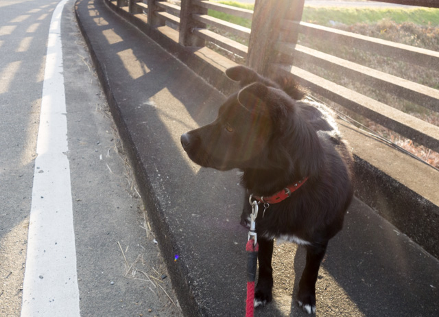 朝の光を浴びてイヴ姫橋でたたずむマリン。