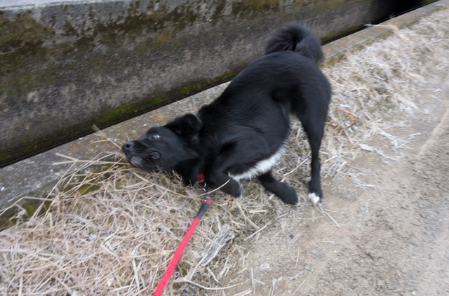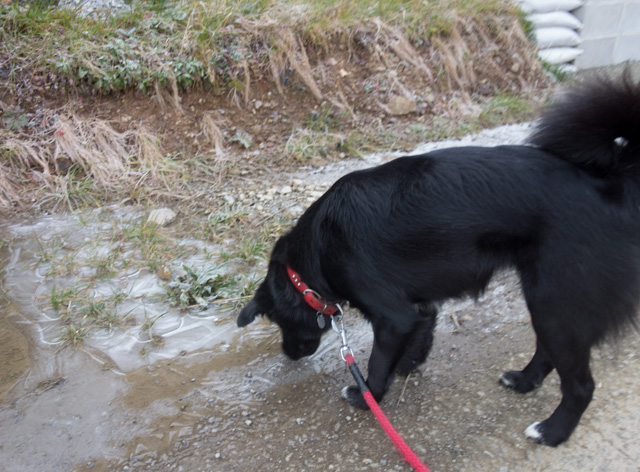 水路の水も凍っているでしゅね。