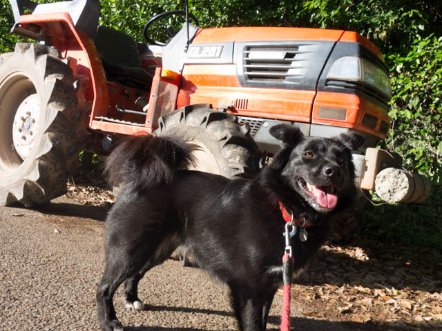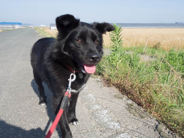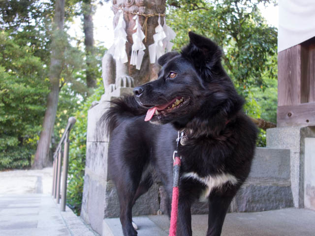 今日こそは飼い主の期待に沿って神社への参道を行く。