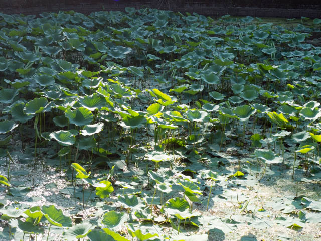 お池の中には蓮の葉がいっぱい、ブンブンブン、マリンが行く。