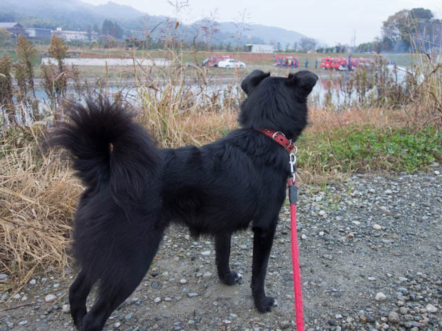 途中で何台もの消防ポンプ車が駆け付けたきたよ。